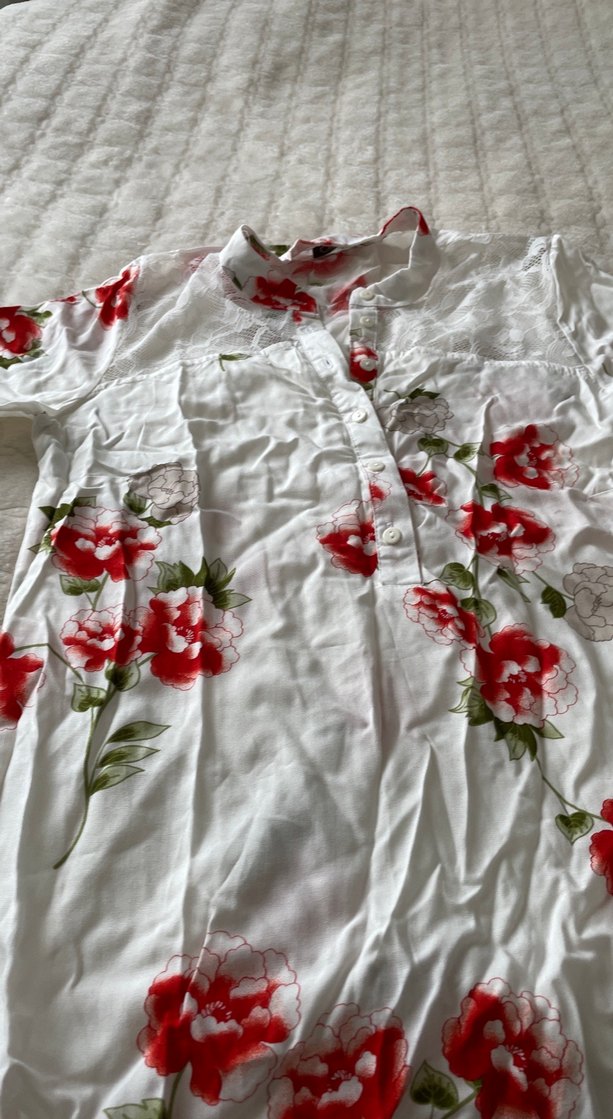 Hiç kullanılmadı, yeni, tertemiz ,kısa kollu çiçek desenli gömlek.