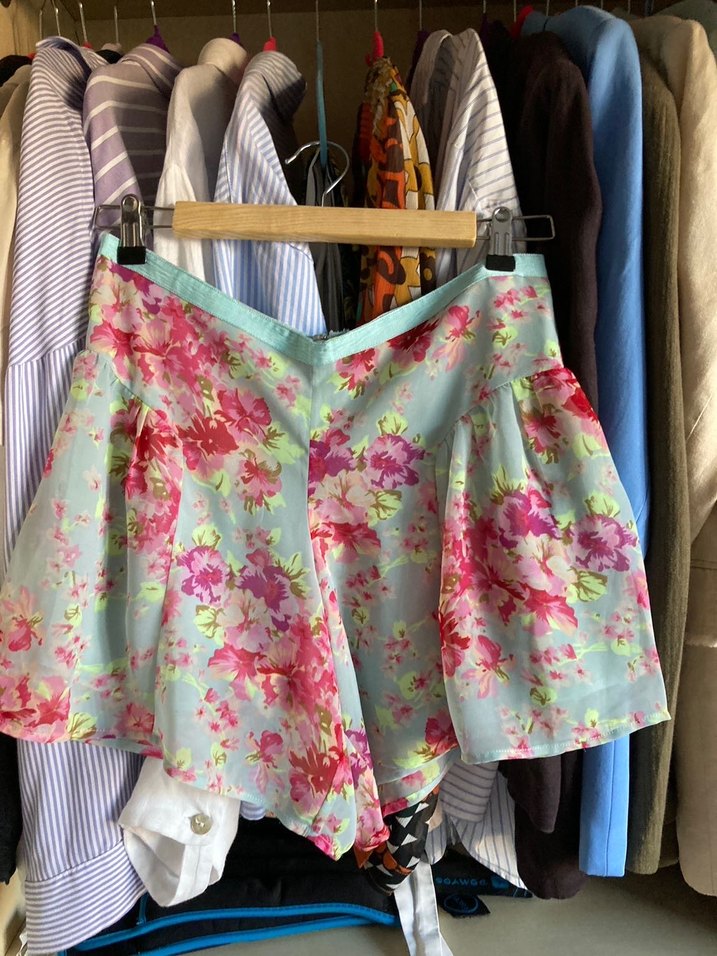 Pastel renkli, bol kesim ve pilili tasarıma sahip şort, canlı çiçek desenleriyle bohem tarzı yansıtıyor. Ürün kotondan alındı fakat etiketi farklı bir seriye ait sanırım, birkaç kez giyildi