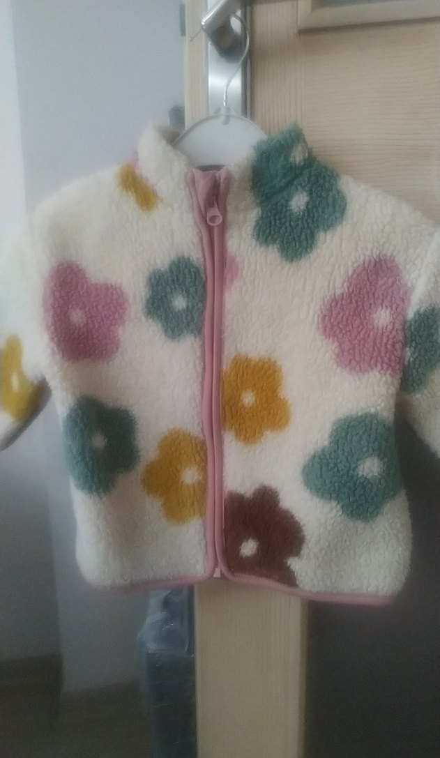 Fermuarlı ve yuvarlak yakalı, yumuşak ve sıcak kumaştan yapılmış, pastel renkli çoklu çiçek desenli kız çocuk ceketidir.