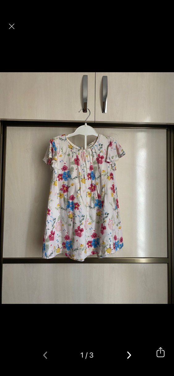 Rahat kesim kız çocuk elbisesi, kısa kollu ve çok renkli çiçek desenlidir. Pamuklu yumuşak kumaştan, fırfır detaylı ve straplez yakalıdır.