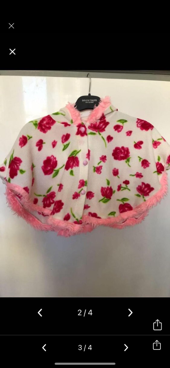 Çiçek Desenli Kız Çocuk Ponçosu, Düğmeli, Pembe #pelus #panco