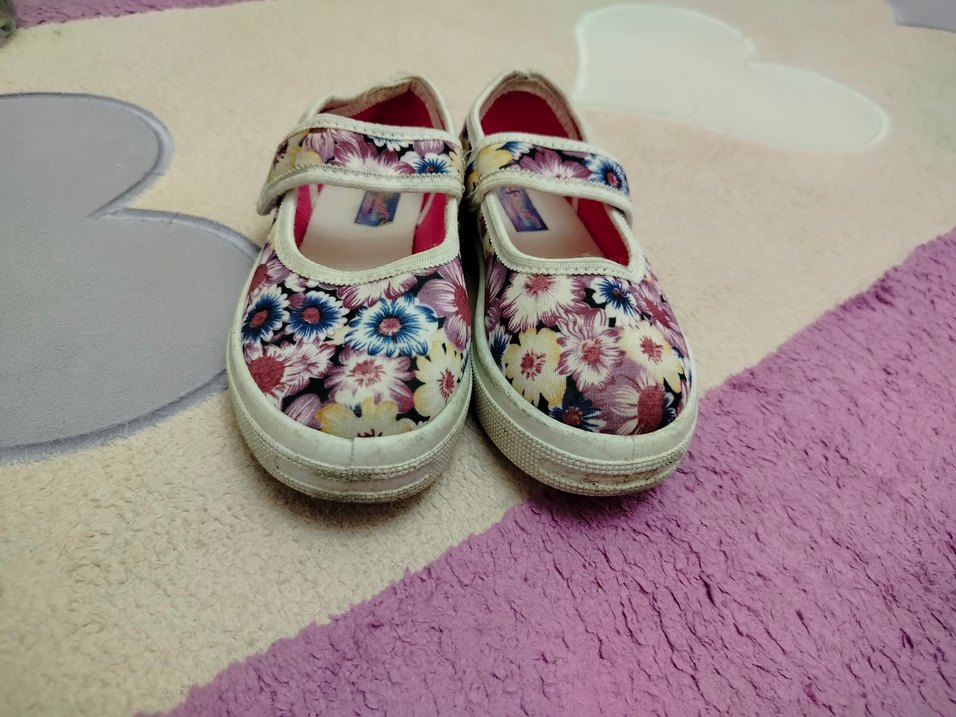 Çiçek desenli, renkli, cırt cırtlı kız çocuk spor ayakkabısı. Pembe tonlarında, kauçuk tabanlı, rahat sokak stili.