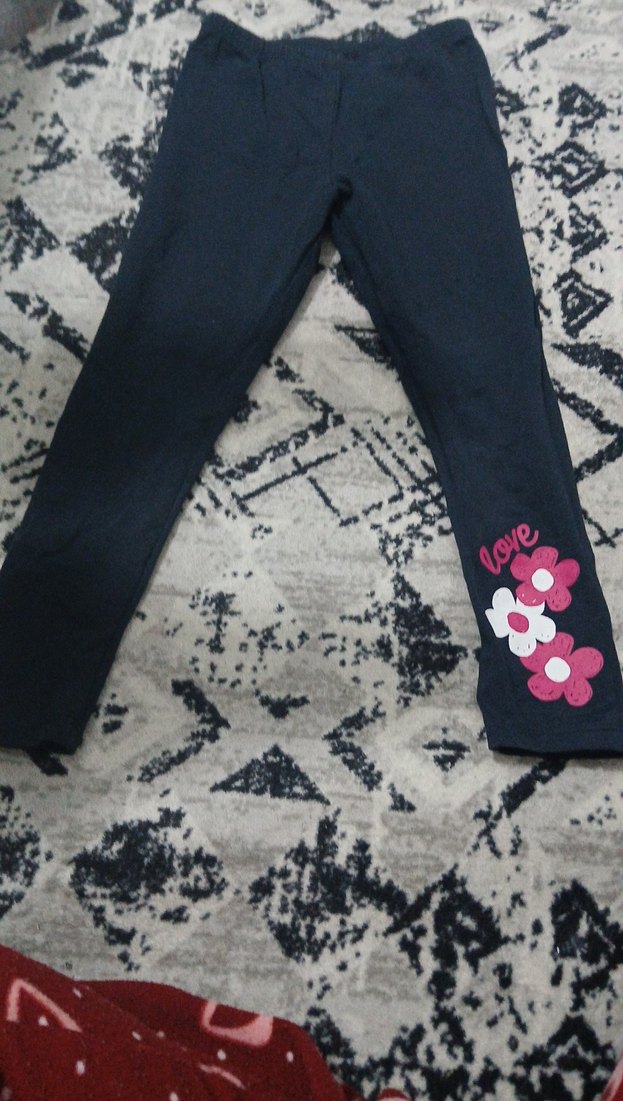Mavi renkli, elastik bel bantlı kız çocuk taytı, renkli çiçek baskılı ve yumuşak, sıcak kumaştan, sokak stili için uygundur.