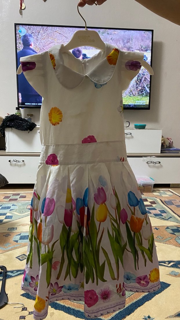 Çiçek Desenli Kız Elbisesi, Kısa Kollu, Pileli