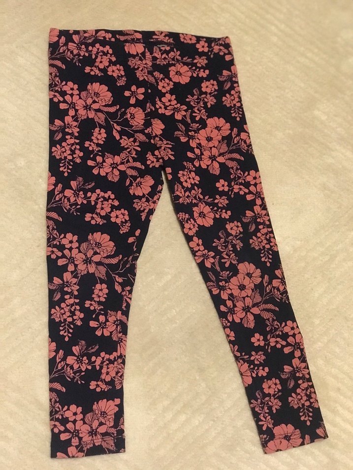 Koyu pembe çiçek desenli, elastik bel ve esnek sentetik kumaştan yapılmış kız taytı.