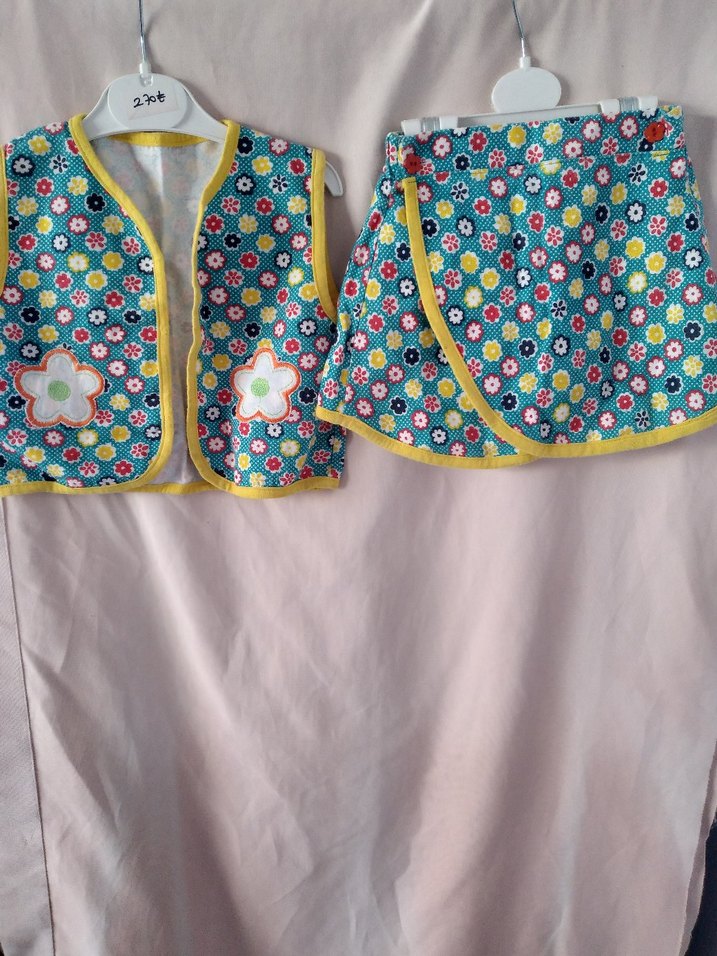 Çiçek Desenli Kız Yeleği ve Etek Takımı