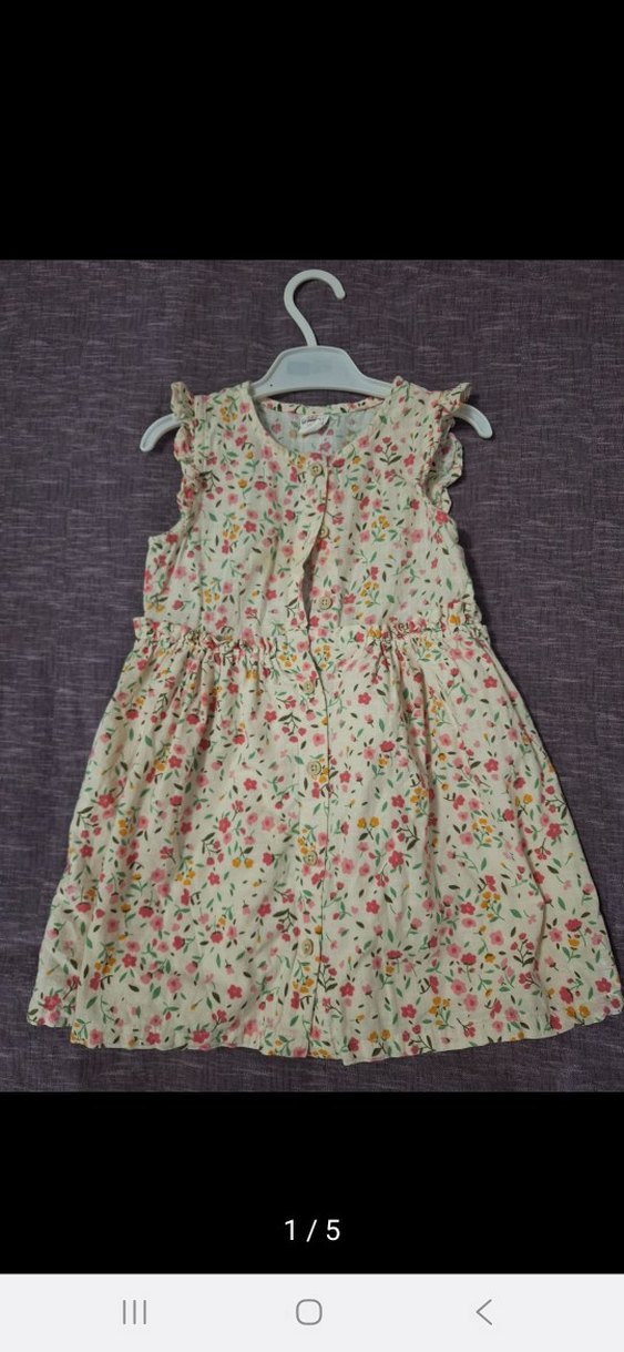 Kolsuz, bol kesim kız elbisesi, fırfır detaylı ve pastel çiçek desenli, yumuşak sentetik kumaştan yapılmıştır.