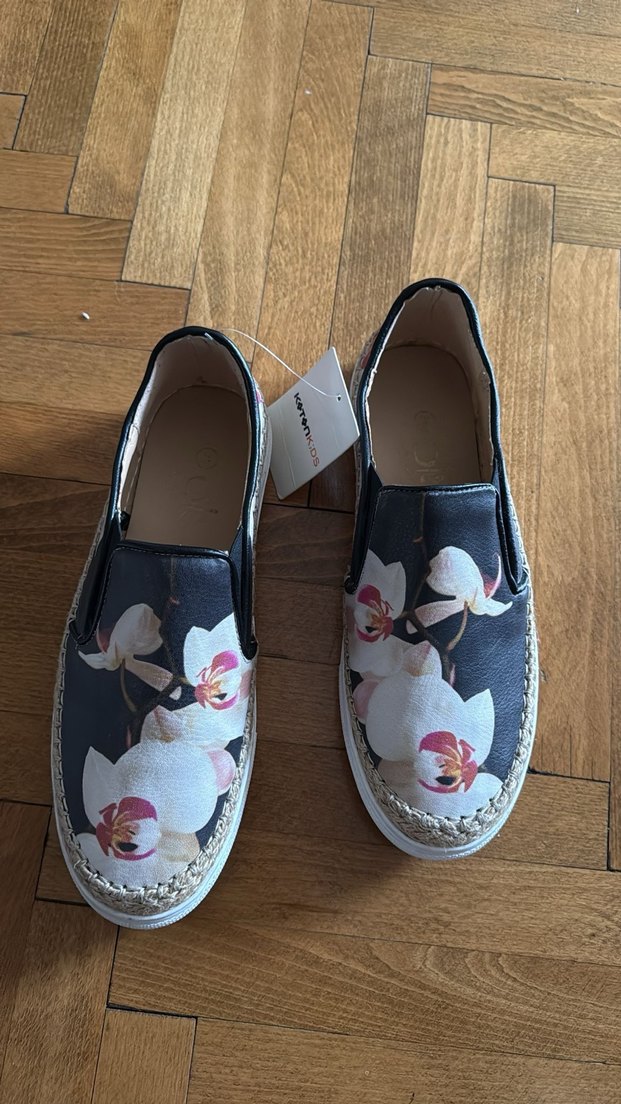 Çiçek desenli beyaz espadriller, kullanilmadi