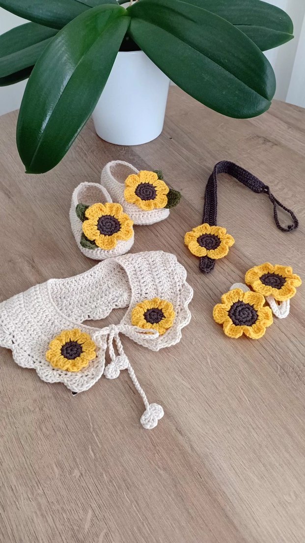 Güneşin Sıcaklığı Bebeklerinizin Üzerinde! Tamamen el emeği ile, en kaliteli bebek dostu iplerle örülen "Ayçiçeği Serisi" bebek setimiz satışta! Hem şıklık hem de konfor arayan anneler için özel olarak tasarlandı. Yumuşacık dokusuyla miniklerin cildini tahriş etmez. ✨ Set İçeriği: El Örgüsü Ayçiçeği Detaylı Yaka Yumuşacık Bebek Patiği Şık Emzik Zinciri Takım Tokalar Baby shower, doğum günü veya yeni doğan ziyaretleri için harika bir hediye seçeneği! #patik #emzikzinciri #yaka #çıtçıttoka #hediye