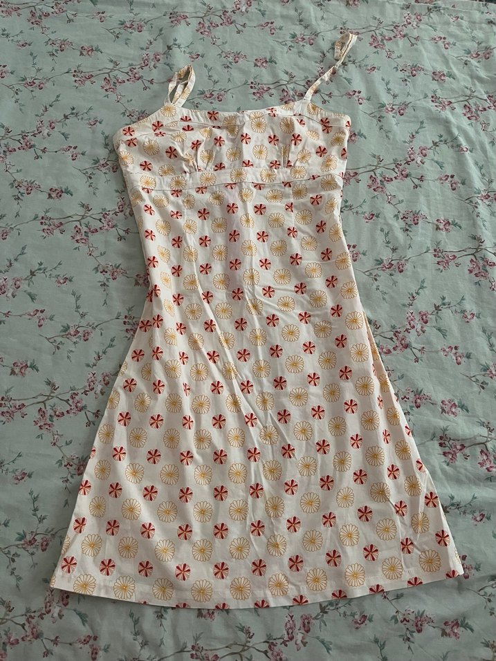 Drapeli ve straplez tasarımlı, pamuklu kumaştan yapılmış, pastel renkli çiçek desenli, vücuda oturan midi boy bohem elbise. O kadar Lolita o kadar tatlılar bir elbise ki. Sadece bir askısı defolu resimlerde gözüktüğü gibi ama halledilmeyecek bir sorun değil yine de fiyatı uygun tuttum. L beden ama S-M ye daha uygun sanki.
