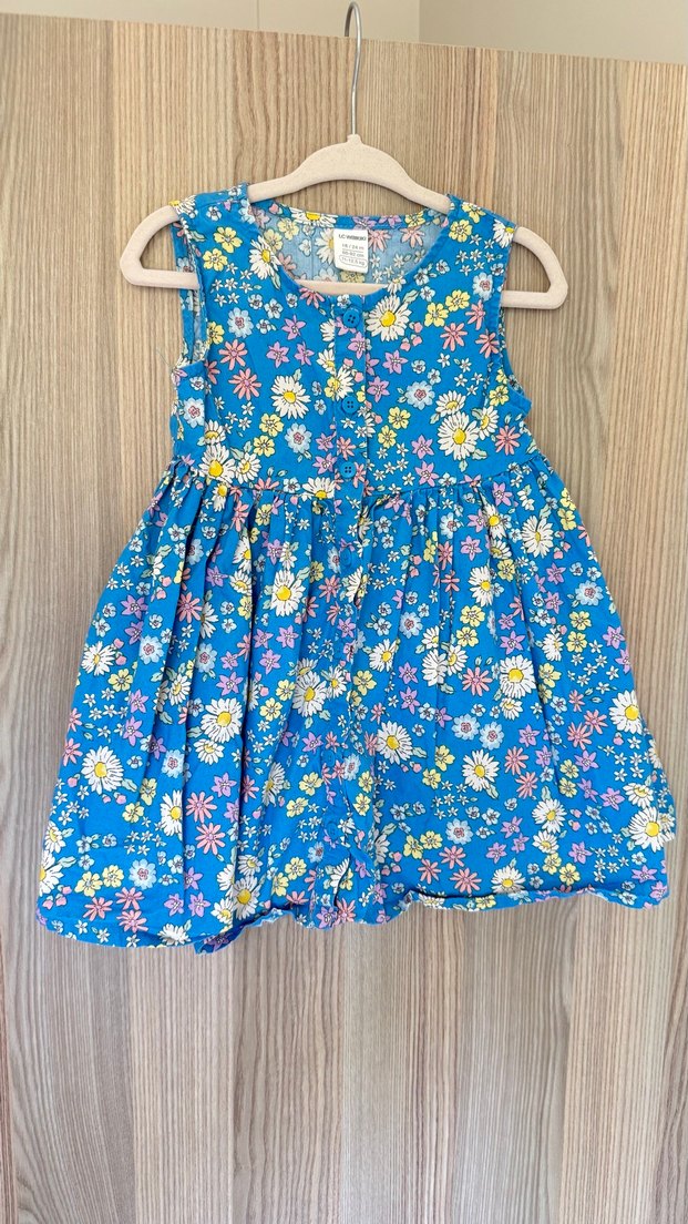 Çiçek Desenli Mavi Kız Elbisesi