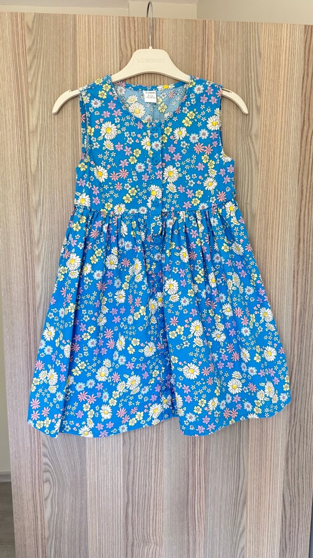 Çiçek Desenli Mavi Kolsuz Kız Elbisesi