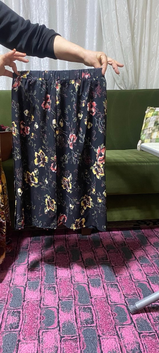 Sentetik kumaştan yapılmış, çiçek desenli koyu renkli, bol ve drapeli midi uzunlukta bohem etek. Günlük kullanım için uygundur.