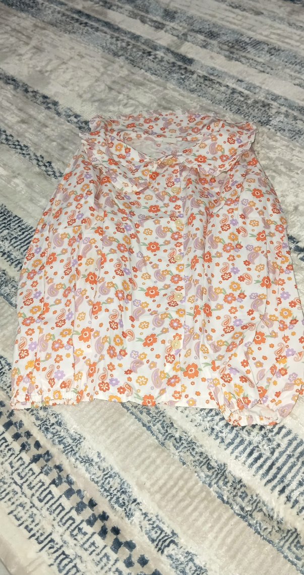 Çok renkli, pastel çiçek desenli, kollu, bol kesim ve tekne yaka gömlek 9 yaş kiz çocukları için yeni hiç giyilmedi