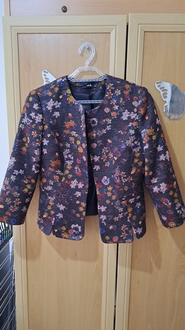 Koyu renkli, çok renkli kadın ceketi, kesme yaka ve düğmeli kapamalıdır. Normal kesim, uzun kollu ve çiçek desenli, vintage ve bohem tarzlarını yansıtır. Sentetik kumaştan üretilmiştir, ofis için uygundur. 2 ya da 3 kere giymişimdir. çok guzel bir ceket kolsuz elbiseler veya bordo renkli pantolon ile cok guzel oluyor. cok begendigim bir ceket kilo alinca M bedenini baska birinden buldum. o yuzden Xs yi satiyorum kilo veremicem gibi