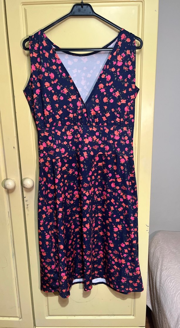 Çiçek Desenli Midi V Yaka Kolsuz Elbise