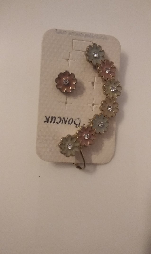 Pastel renklerde, çiçek desenli boncuklu mini küpe seti. Vintage ve bohem tarzıyla günlük kullanıma uygun, retro bir hava sunar. renkleri uçuk tonlarda yeşil Pembe Sarı ve mavi. bir tanesi tekli minik küpe diğeri ise kulağı çepeçevre sarıyor