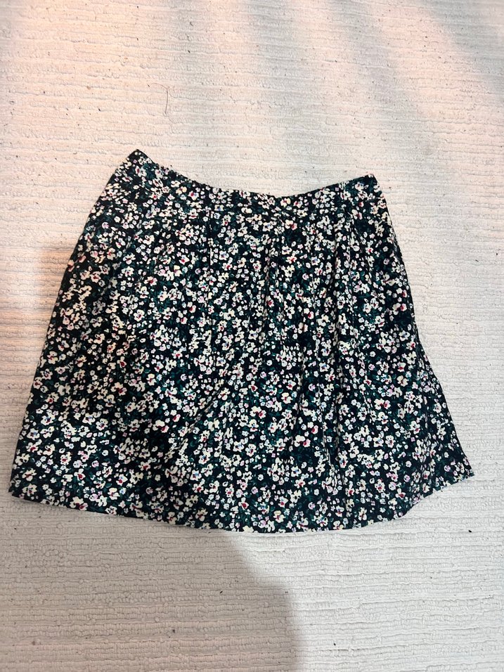 Bu mini etek, bol kesim ve fırfır detaylarıyla koyu çiçek desenine sahip, trend sokak stili için uygun. Koton marka 40 beden koyu yeşil kışlık mini etek