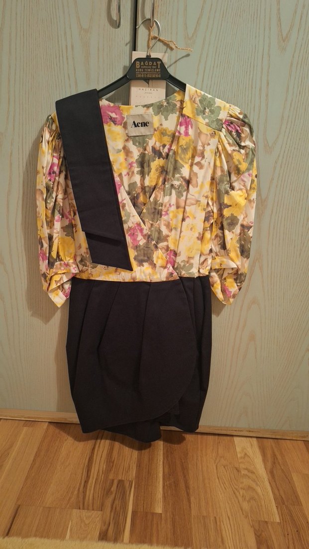 Kadınlar için mini boy, bol kesim, drapeli, kısa kollu kimono elbise. V yaka, çok renkli çiçekli baskı ve sentetik kumaş. Ofis ve sokak stili için uygundur.