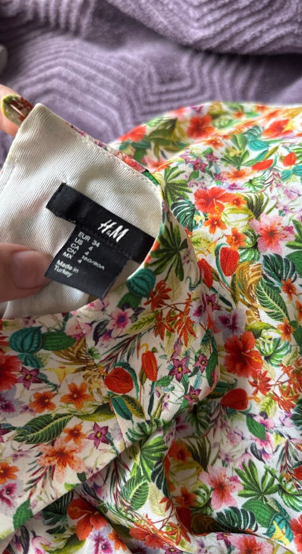 H&M marka, canlı pastel renklerde çiçek desenli, bohem tarzda kısa mini büstiyer. Türkiye'de üretilmiş, renkli ve rahat tasarım.