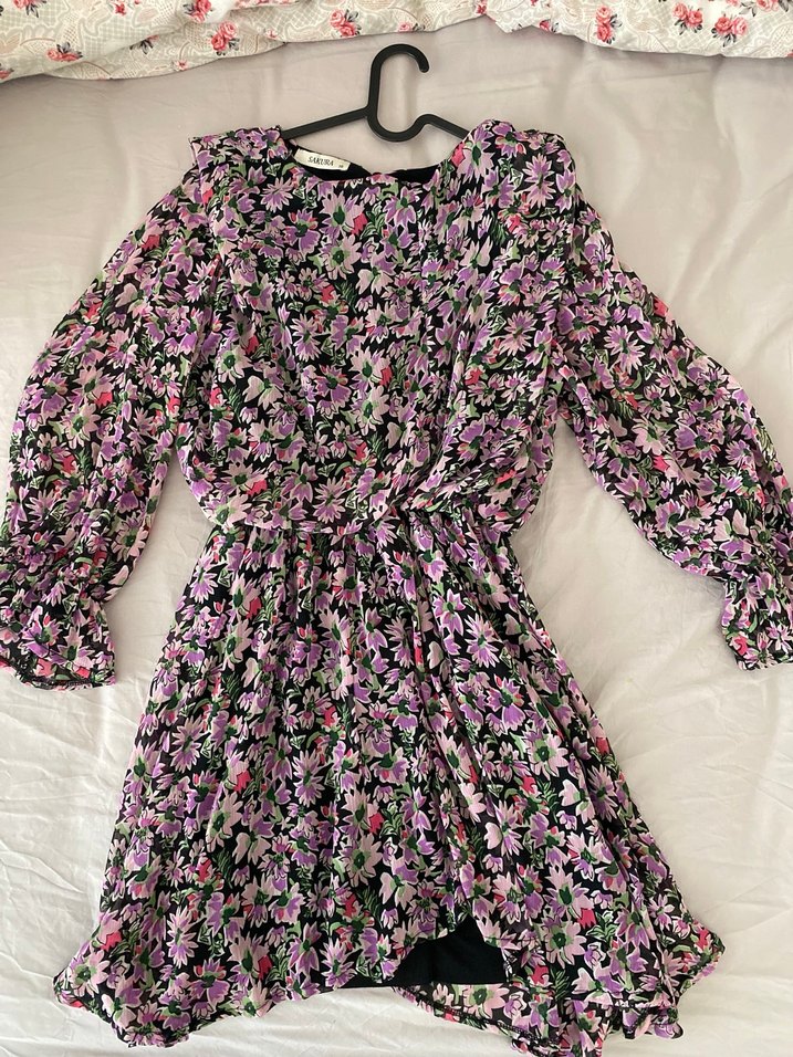 Çiçek Desenli Mor Mini Elbise