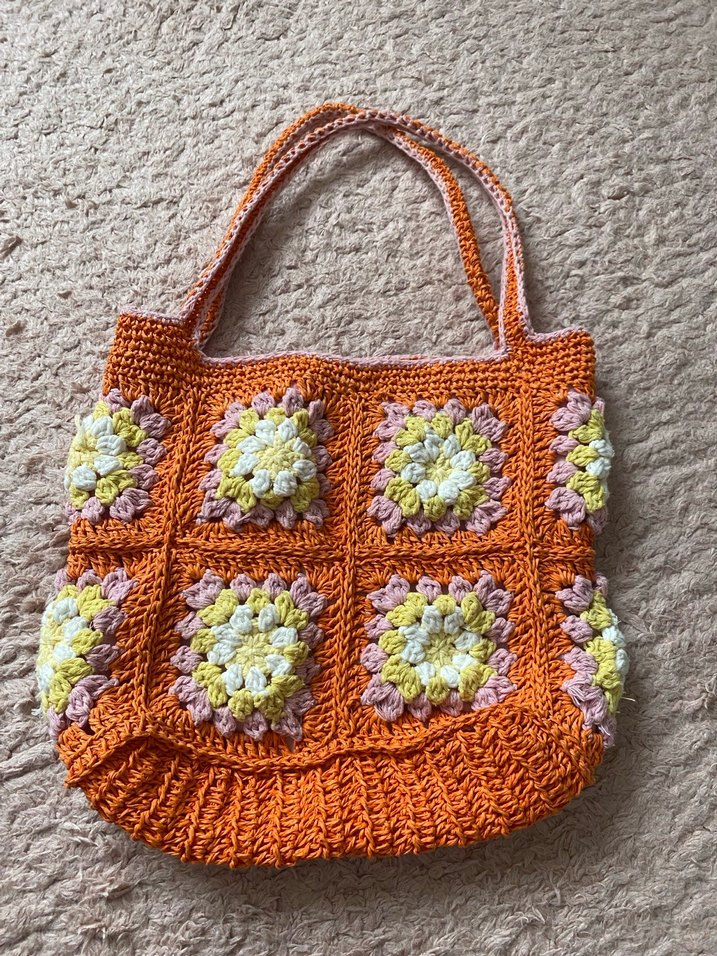 Pastel renklerde çiçek desenli, örgü bohem tarzda kadın çantası, günlük kullanım için uygundur. El örmesidir