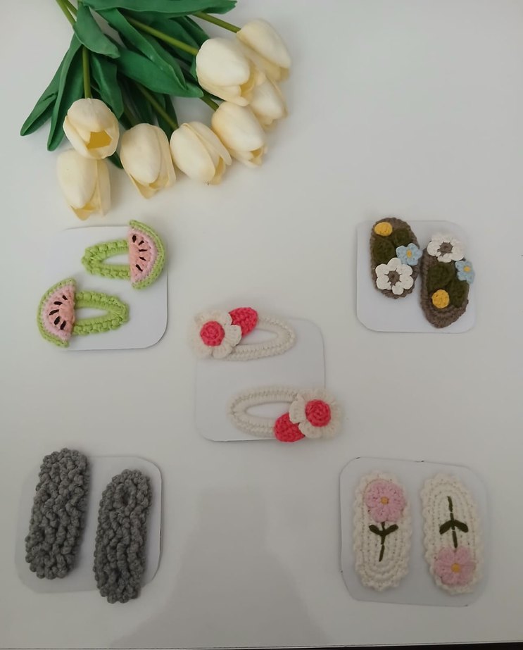 Çiçek Desenli Örgü Çocuk Toka Seti