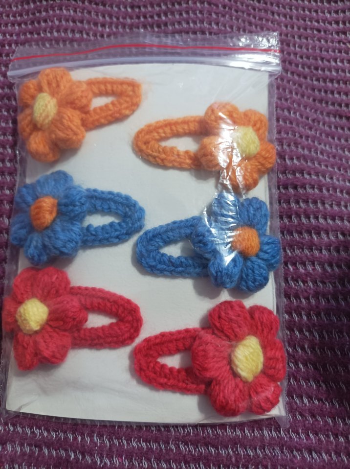 Çiçek desenli, renkli örgü çocuk saç tokaları seti. Bohem ve retro tarzda tasarlanmıştır. 3lu çift fiyatıdır ,rengarenk saçlar