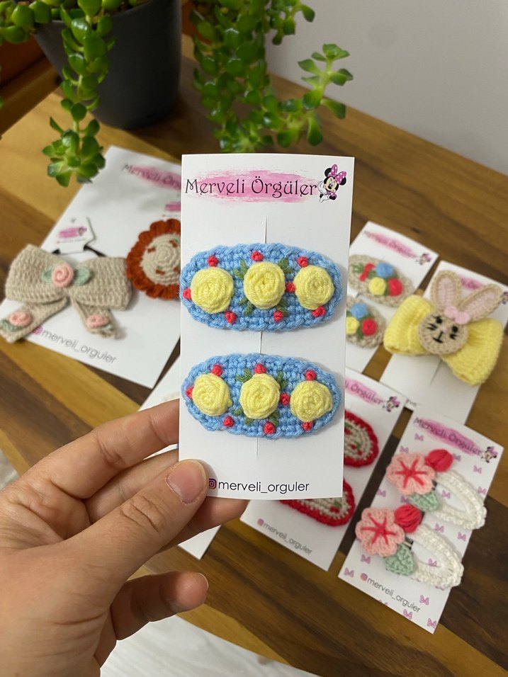 Çiçek Desenli Örgü Çocuk Toka Seti