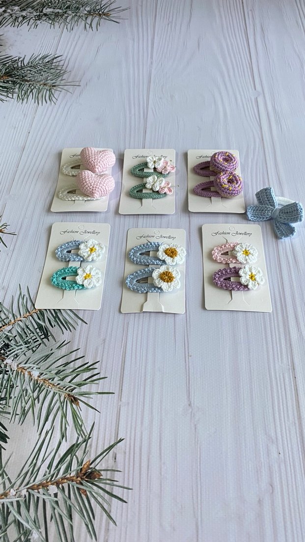 Adet fiyatıdır Çiçek desenli, örgü dokulu pastel renklerde bohem tarzda çocuk saç tokası seti. Yumuşak dokulu ve çok renkli tokalar içerir.