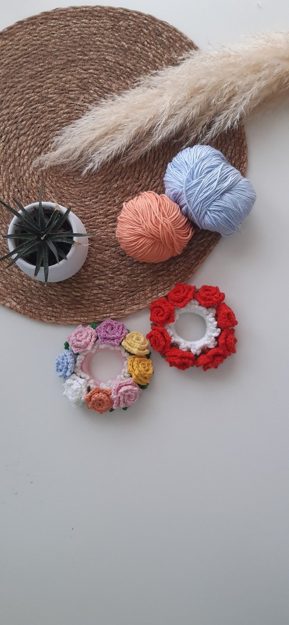 Çocuklar için çiçek desenli, renkli örgü saç tokaları. Bohem tarzda, retro ve hippie dokunuşlar sunar. kiz cocuklarinin saclarina farkli bir hava katar
