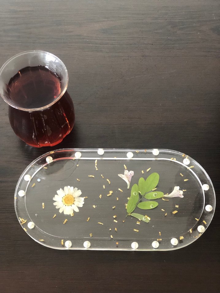 Çiçek Desenli Oval Tepsi