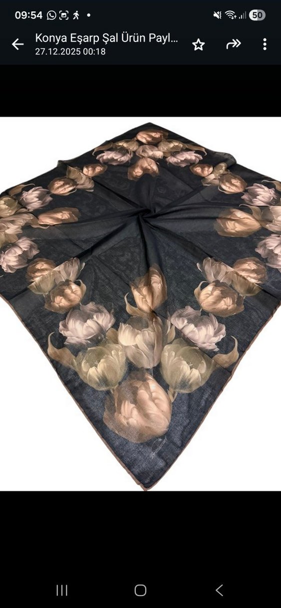 pamuklu eşarp koyu tabanlı çiçek desenli