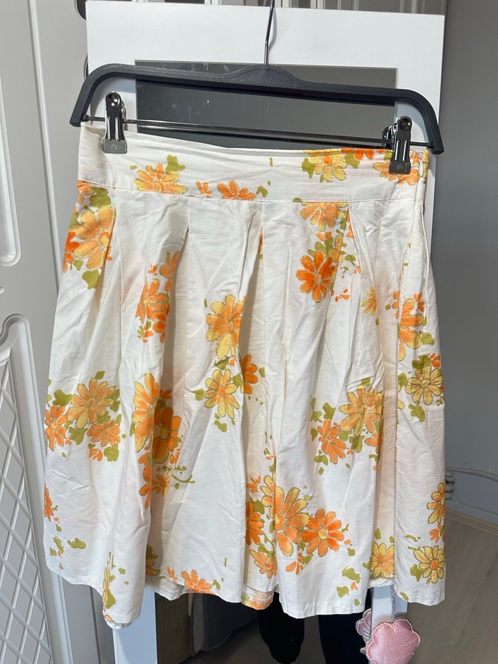 Pamuklu, pileli, bol kesim etek. Beyaz zemin üzerinde turuncu çiçek baskılı, rahat ve bohem tarzda, evde kullanıma uygun. #Zara #Bershka #Pull&Bear #Stradivarius #etek #kotelbiṡe #tişört #crop #midi #pembe #sarı #butteryellow #Mango #Intimissimi #Vakkorama #blazer #VictoriasSecret #ayakkabı #coquette #vintage #Adidas #Pandora #Benefit #UrbanOutfitters #Alo #beyaz #abiye #pembeküpe #yoga #uzunelbise #plaj #bikini #mayo #jean #şort #keten #pullu #boncuk #dantel #bodysuit #zara #bershka #pull&bear #gotic #y2k #coquette #vintage #pinterest #elbise #grunge #mango kaban kürk hırka ceket sweat eşofman takımı mont pamuk kaşmir saten