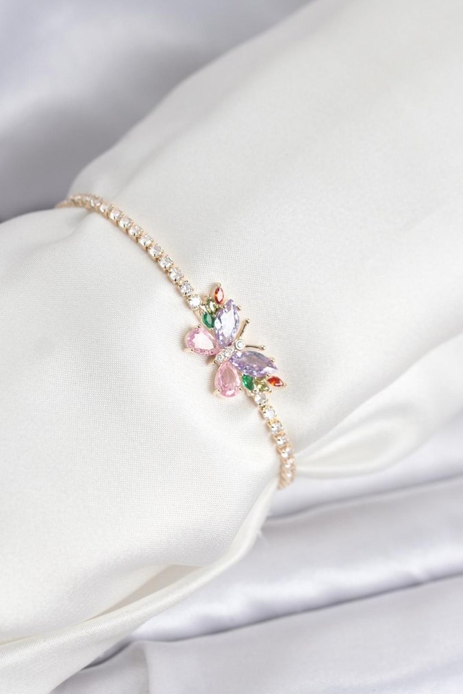 Çiçek Desenli Parlak Pastel Bileklik