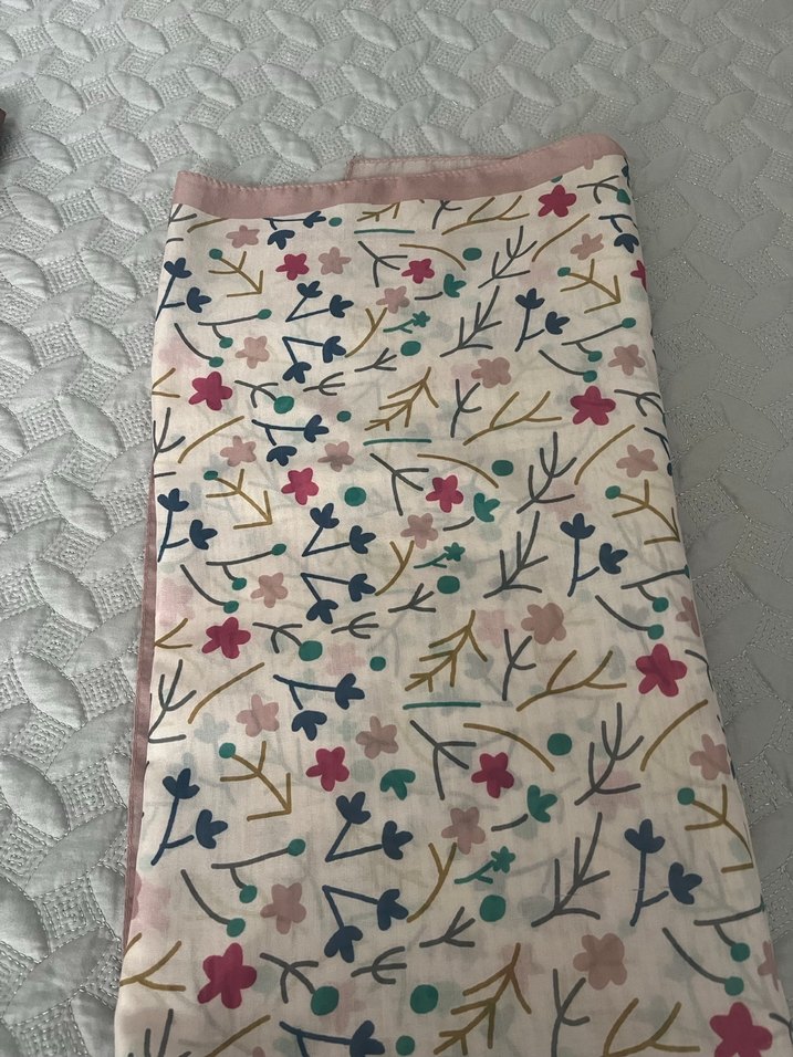 Çocuklar için çiçek desenli, pastel renklerde yumuşak sentetik kumaştan hafif ve rahat battaniye.