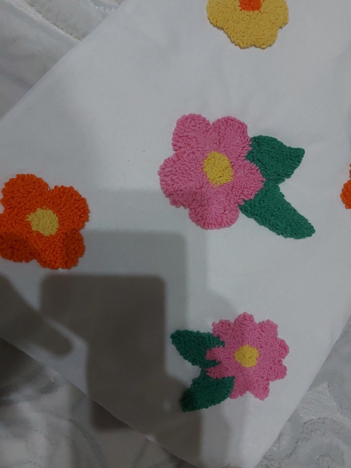 Çiçek Desenli Pastel Renkli punch işlemesi çanta ASTARLI