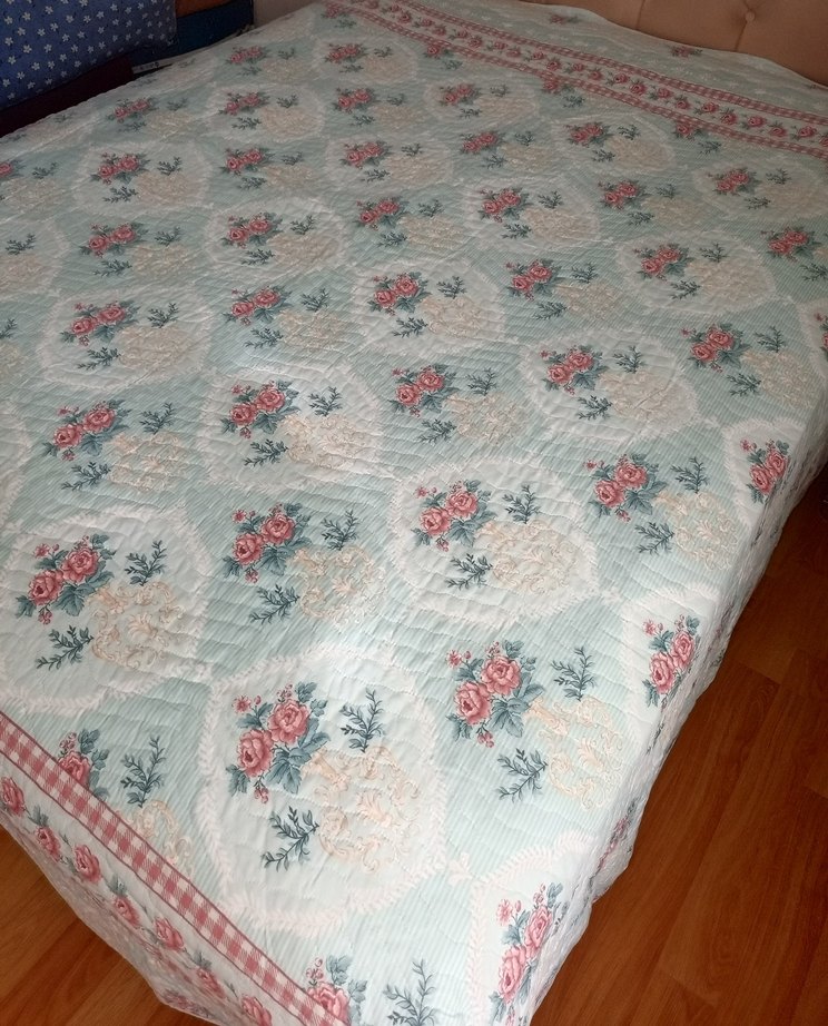 Pastel çok renkli çiçek desenli, yumuşak kapitone dokulu yatak örtüsü, yatak odasına hafif bir dokunuş katıyor. hiç kullanılmadı hediye geldi. taşıma çantasının fermuarı bozuk sâdece. marka temsili