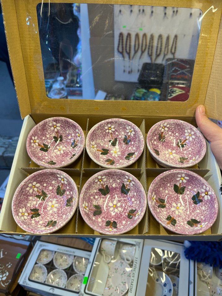 5 cm Altı adet lila renk papatya desenli,tabaktan oluşan geleneksel tarzda tabak seti. Kahvaltı ve kuruyemiş tabağı olarak kullanılabilir