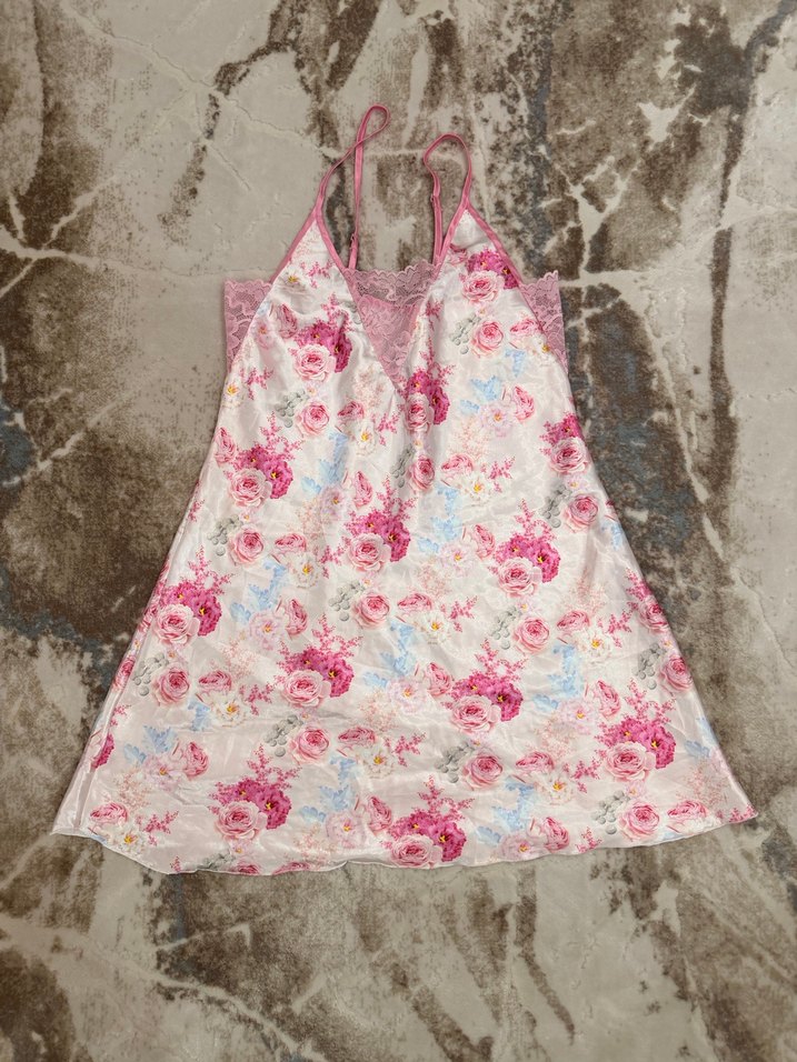 Çiçek desenli, pembe renkli, salaş kesim, kolsuz midi gecelik. Bohem tarzıyla rahat ve konforlu uyku için ideal.
