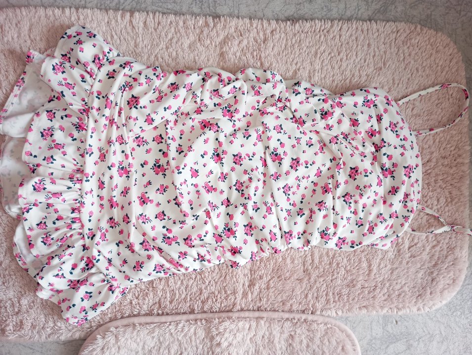 Pastel pembe renkli, çiçek desenli, elbise