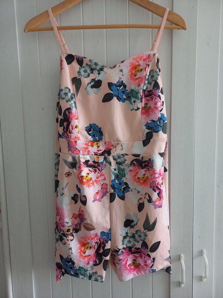 Çiçek Desenli Pembe Kısa Kadın Tulum