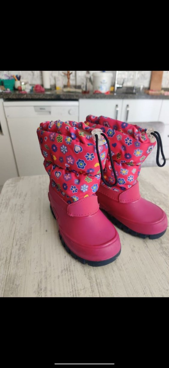 Renkli çiçek desenli pembe kız çizmesi iki kez kullanıldı tertemiz.