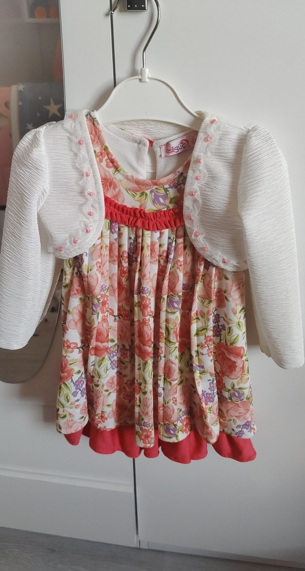Çiçek Desenli Pileli Kız Çocuk Elbisesi