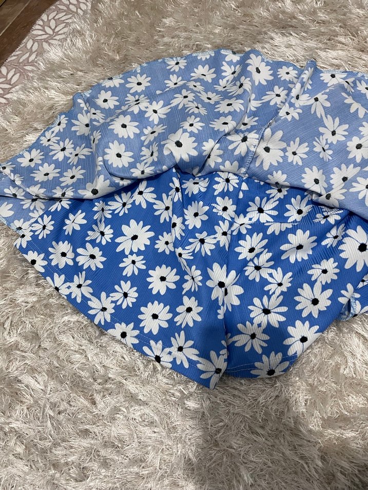 Çiçek Desenli pileli Mavi şortlu etek