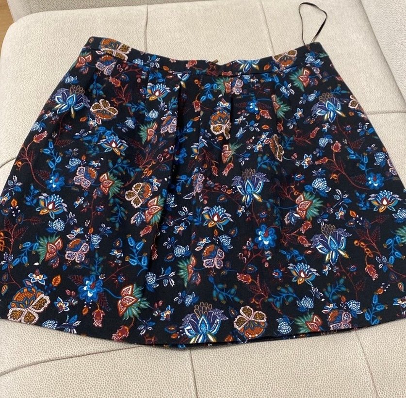 Bohem tarzda, pilili ve bol kesim mini etek. Koyu renkli, çok renkli çiçek desenli ve sentetik kumaştan yapılmıştır. Günlük kullanıma uygundur.