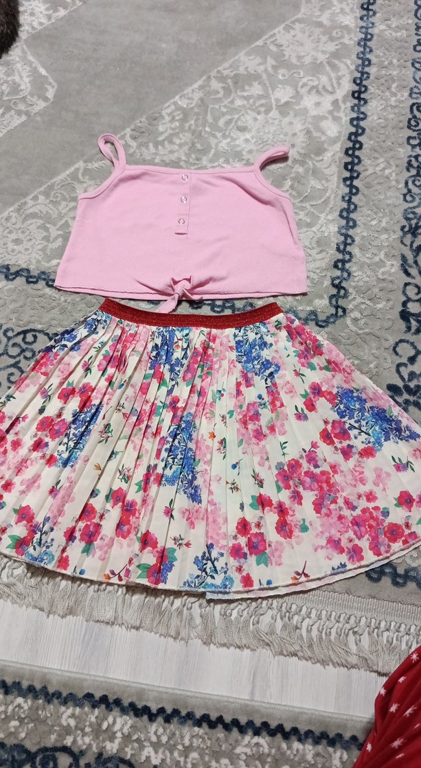 Çiçek Desenli Pilili Renkli Kız Etek