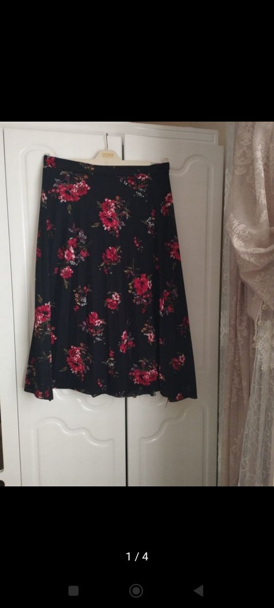 Koyu renkli, çiçek desenli etek, bol kesim ve piliseli tasarıma sahiptir. Yumuşak sentetik kumaştan üretilmiş, bohem ve gotik stiller için uygundur.geri iade yoktur