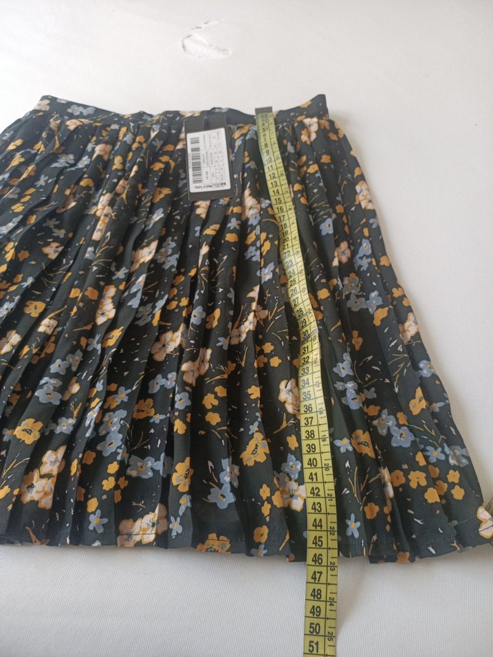 Bohem tarzda, koyu renkli çok renkli çiçek desenli piliseli midi etek. Sentetik kumaştan, bol kesim ve açık hava etkinliklerine uygun. yenidir etiketli ürün