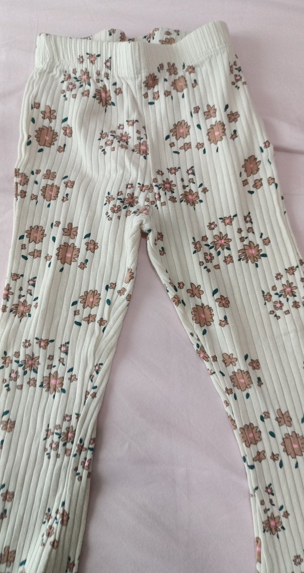 Yumuşak sentetik kumaştan, pastel çiçek desenli ve pliseli beyaz, dar kesim kız tayt. Bohem ve retro tarzlar için uygun.